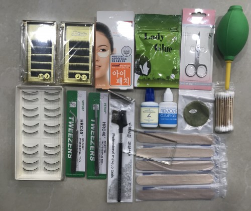 속눈썹 연장 시험에 필요한 제품을 모두 담았습니다.